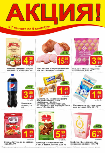 Текущие и будущие каталоги акций "Акционные предложения (7 Августа - 9 Сентября 2025)" супермаркетов Хлебосолье Барановичей