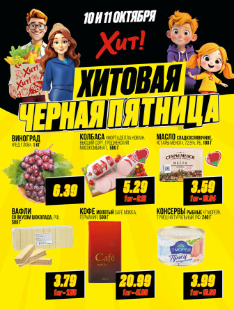 Текущие и будущие каталоги акций "Хитовая Черная Пятница! (10 - 11 Октября 2025)" супермаркетов Хит Барановичей