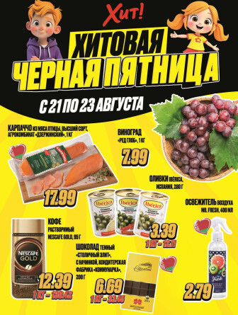 Текущие и будущие каталоги акций "Хит!овая черная пятница (21 - 23 Августа 2025)" супермаркетов Хит Барановичей