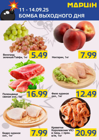 Текущие и будущие каталоги акций "Бомба выходного дня! (11 - 14 Сентября 2025)" супермаркетов MART INN Бобруйска