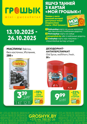 Текущие и будущие каталоги акций "Цуд-Цана для дискаунтера «Грошык Міні» (13 - 26 Октября 2025)" супермаркетов Грошык Бобруйска