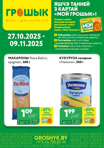 Текущие и будущие каталоги акций "Цуд-Цана для дискаунтера «Грошык Міні» (27 Октября - 9 Ноября 2025)" супермаркетов Грошык Бобруйска
