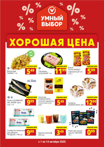 Текущие и будущие каталоги акций "Хорошая цена! (1 - 14 Октября 2025)" магазинов Умный выбор Бобруйска