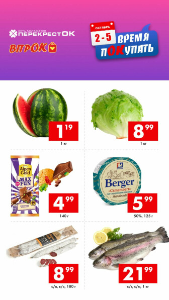 Текущие и будущие каталоги акций "Время покупать! (2 - 5 Октября 2025)" супермаркетов ПерекрестОК Бобруйска