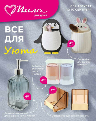 Специально для Вас, и для Вашего удобства, мы сгруппировали максимальное количество актуальных, а главное акционных предложений от супермаркетов Беларуси. На данной странице Вы сможете ознакомиться с акцией "Всё для уюта!", которая проводится супермаркетом Мила
