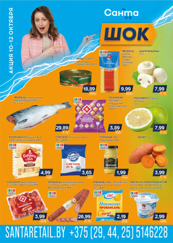 Текущие и будущие каталоги акций "Санта шок! (10 - 12 Октября 2025)" супермаркетов Санта Борисова