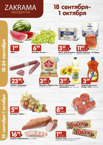 Текущие и будущие каталоги акций "Успей купить! (18 Сентября - 1 Октября 2025)" супермаркетов Zakrama Борисова