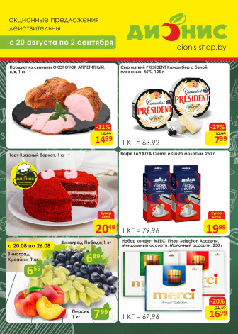 Текущие и будущие каталоги акций "Акционная листовка! (20 Августа - 2 Сентября 2025)" супермаркетов Дионис Бреста