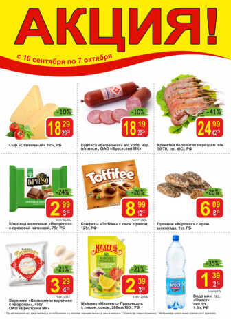 Текущие и будущие каталоги акций "Акционные предложения (10 Сентября - 7 Октября 2025)" супермаркетов Хлебосолье, Скарбонка, Cent Бреста