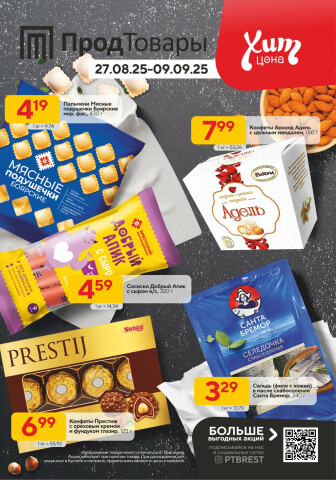 Текущие и будущие каталоги акций "Хит-цена! (27 Августа - 9 Сентября 2025)" супермаркетов Продтовары, Мікс Бреста