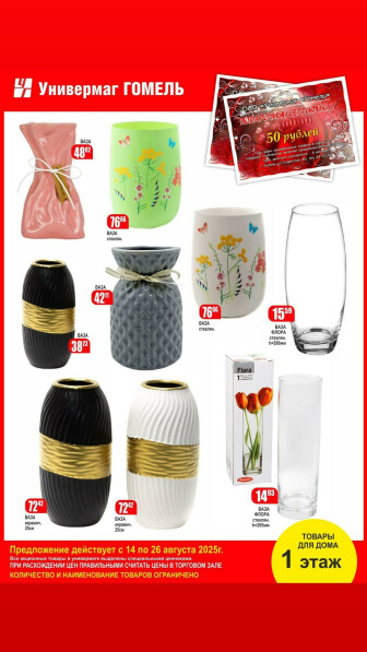 Текущие и будущие каталоги акций "Акционная листовка! (20 - 26 Августа 2025)" супермаркетов Универмаг "Гомель" Гомеля