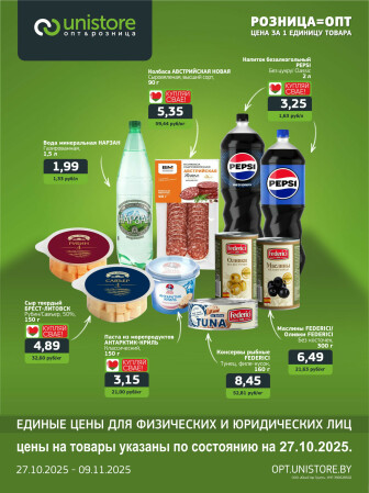 Текущие и будущие каталоги акций "Акционная листовка (27 Октября - 9 Ноября 2025)" магазинов Unistore Гомеля