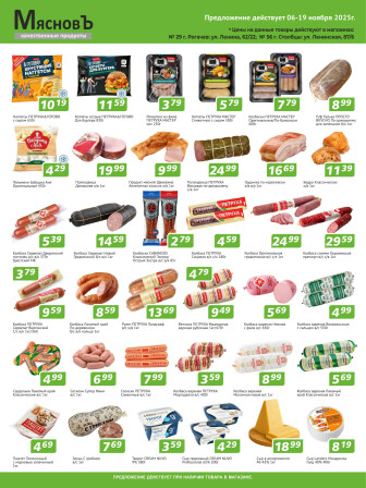 Текущие и будущие каталоги акций "Акционные предложения! (6 - 19 Ноября 2025)" магазинов Мясновъ Гомеля