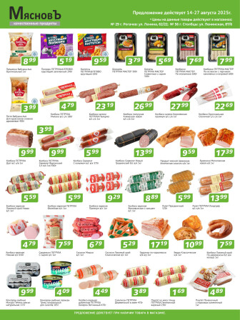 Текущие и будущие каталоги акций "Акционные предложения! (14 - 27 Августа 2025)" магазинов Мясновъ Гомеля