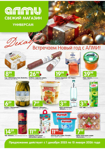 Текущие и будущие каталоги акций "Месяц акционных предложений! (Алми только для универсамов) (1 Декабря 2025 - 15 Января 2026)" супермаркетов АЛМИ, Eurospar Гродно
