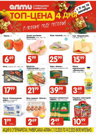 Специально для Вас, и для Вашего удобства, мы сгруппировали максимальное количество актуальных, а главное акционных предложений от супермаркетов Беларуси. На данной странице Вы сможете ознакомиться с акцией "Топ-цена (Алми только для универсамов и супермаркетов)", которая проводится супермаркетом АЛМИ