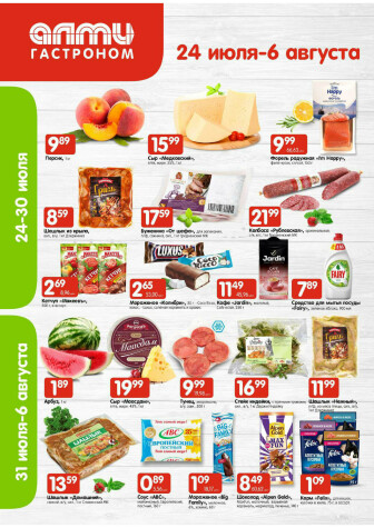Текущие и будущие каталоги акций "Акционная листовка (Алми только для гастрономов) (24 Июля - 6 Августа 2025)" супермаркетов АЛМИ Лиды