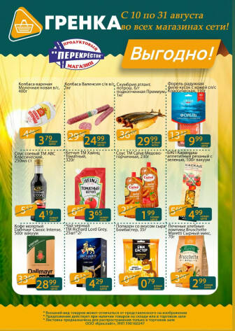 Текущие и будущие каталоги акций "Акционные предложения! (10 - 31 Августа 2025)" магазинов Гренка, Перекресток Лиды