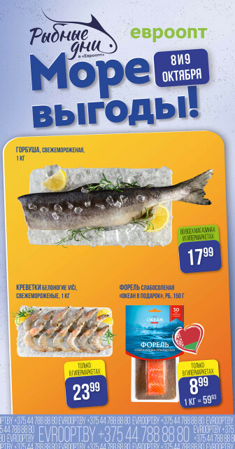 Текущие и будущие каталоги акций "Рыбные дни! (предложение только для гипермаркетов) (8 - 9 Октября 2025)" супермаркетов Евроопт Лиды
