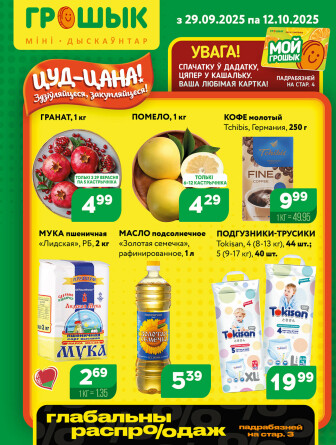 Текущие и будущие каталоги акций "Акционная листовка для дискаунтера «Грошык Міні» (29 Сентября - 12 Октября 2025)" супермаркетов Грошык Минска