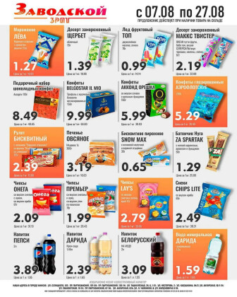 Текущие и будущие каталоги акций "Акционные предложения! (7 - 27 Августа 2025)" супермаркетов Заводской райпищеторг Минска