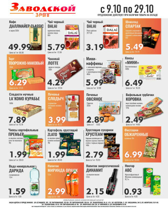 Текущие и будущие каталоги акций "Акционные предложения! (9 - 29 Октября 2025)" супермаркетов Заводской райпищеторг Минска