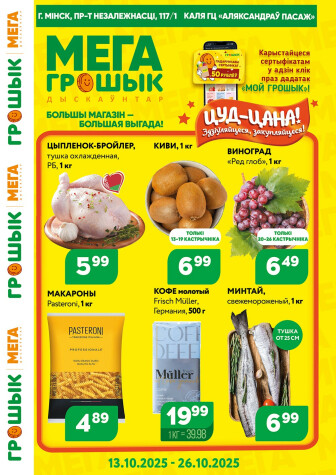 Текущие и будущие каталоги акций "Акционный каталог (Грошык Мега) (13 - 26 Октября 2025)" супермаркетов Грошык Минска