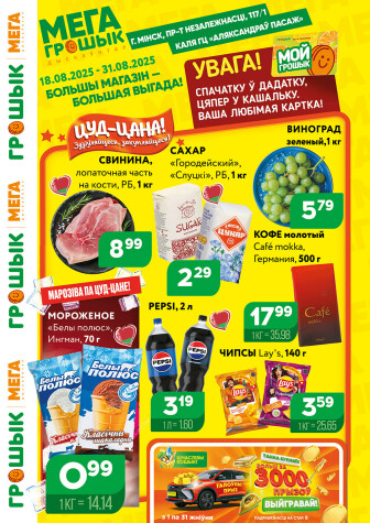 Текущие и будущие каталоги акций "Акционный каталог (Грошык Мега) (18 - 31 Августа 2025)" супермаркетов Грошык Минска