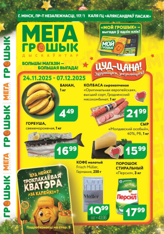Текущие и будущие каталоги акций "Акционный каталог (Грошык Мега) (24 Ноября - 7 Декабря 2025)" супермаркетов Грошык Минска