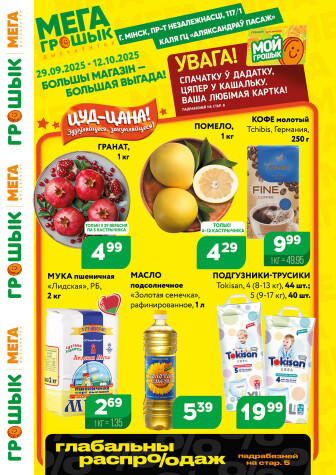 Текущие и будущие каталоги акций "Акционный каталог (Грошык Мега) (29 Сентября - 12 Октября 2025)" супермаркетов Грошык Минска