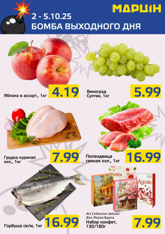 Специально для Вас, и для Вашего удобства, мы сгруппировали максимальное количество актуальных, а главное акционных предложений от супермаркетов Беларуси. На данной странице Вы сможете ознакомиться с акцией "Бомба выходного дня!", которая проводится супермаркетом MART INN