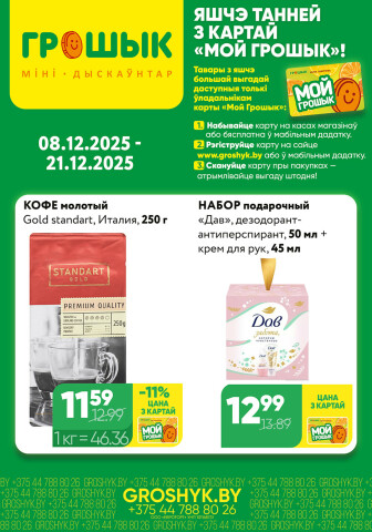 Специально для Вас, и для Вашего удобства, мы сгруппировали максимальное количество актуальных, а главное акционных предложений от супермаркетов Беларуси. На данной странице Вы сможете ознакомиться с акцией "Цуд-Цана для дискаунтера «Грошык Міні»", которая проводится супермаркетом Грошык