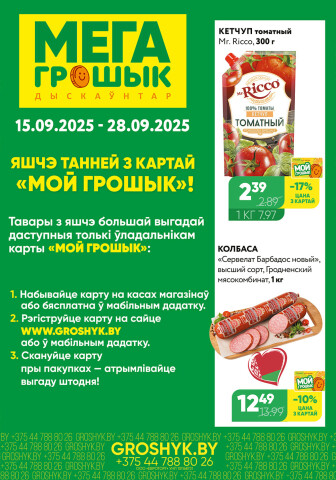 Текущие и будущие каталоги акций "Цуд-Цана! (Грошык Мега) (15 - 28 Сентября 2025)" супермаркетов Грошык Минска