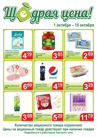Текущие и будущие каталоги акций "Щедрая цена (1 - 15 Октября 2025)" магазинов Щедрый Минска