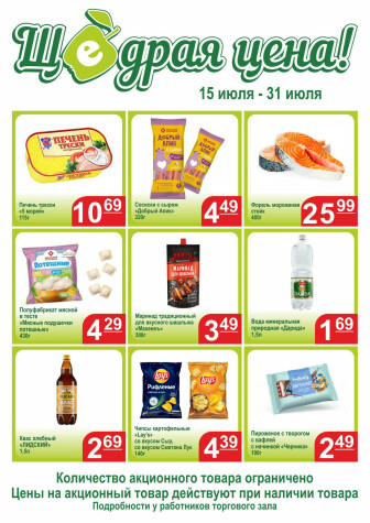 Текущие и будущие каталоги акций "Щедрая цена (15 - 31 Июля 2025)" магазинов Щедрый Минска