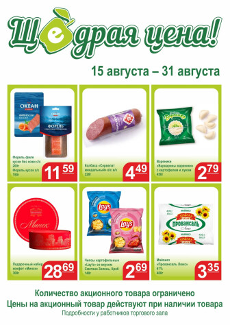 Текущие и будущие каталоги акций "Щедрая цена (15 - 31 Августа 2025)" магазинов Щедрый Минска