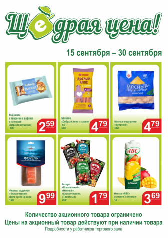 Текущие и будущие каталоги акций "Щедрая цена (15 - 30 Сентября 2025)" магазинов Щедрый Минска