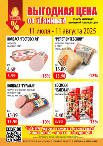 Текущие и будущие каталоги акций "Выгодная цена! (11 Июля - 11 Августа 2025)" супермаркетов Ганна Минска