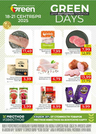 Текущие и будущие каталоги акций "GREEN DAYS! (18 - 21 Сентября 2025)" супермаркетов Green Могилева