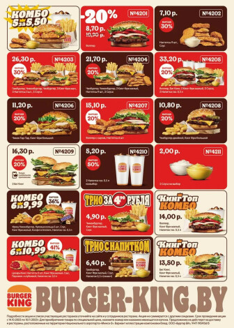 Текущие и будущие каталоги акций "Купоны и скидки (14 Октября - 10 Ноября 2025)" супермаркетов Burger King Могилева