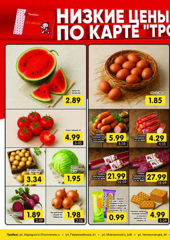 Текущие и будущие каталоги акций "Низкие цены! (по карте Тройка) (1 - 15 Июля 2025)" супермаркетов Тройка Могилева