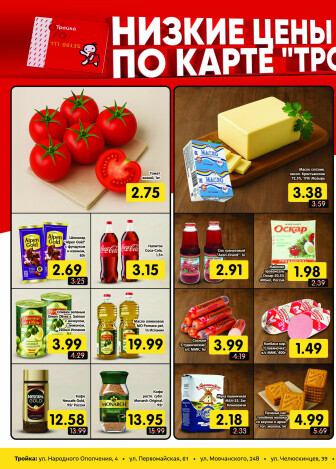 Текущие и будущие каталоги акций "Низкие цены! (по карте Тройка) (13 - 31 Октября 2025)" супермаркетов Тройка Могилева
