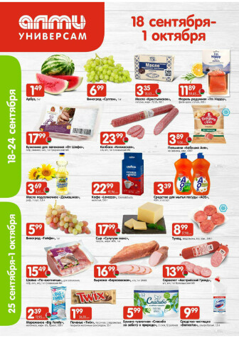 Текущие и будущие каталоги акций "Акционная листовка (Алми только для универсамов) (18 Сентября - 1 Октября 2025)" супермаркетов АЛМИ Молодечно