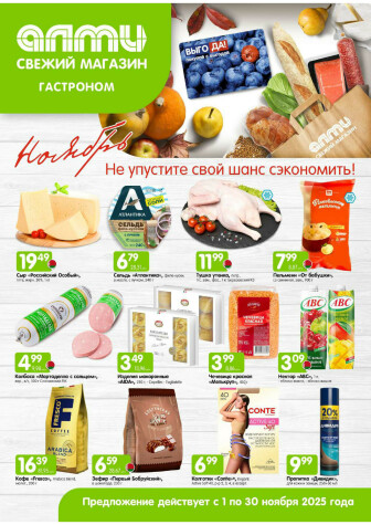 Текущие и будущие каталоги акций "Месяц акционных предложений! (только для гастрономов Алми) (1 - 30 Ноября 2025)" супермаркетов АЛМИ Молодечно