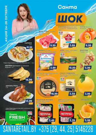 Текущие и будущие каталоги акций "Санта шок! (24 - 26 Октября 2025)" супермаркетов Санта Молодечно