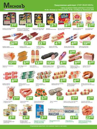 Текущие и будущие каталоги акций "Акционные предложения! (17 - 30 Июля 2025)" магазинов Мясновъ Мстиславля