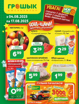 Текущие и будущие каталоги акций "Акционная листовка! (4 - 17 Августа 2025)" супермаркетов Грошык Новополоцка