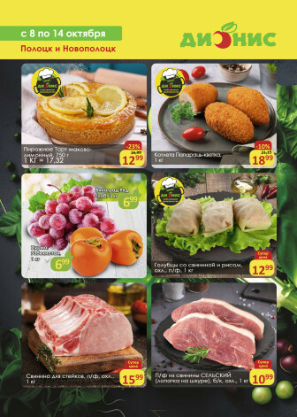 Текущие и будущие каталоги акций "Акционное предложение (Полоцк, Новополоцк) (8 - 14 Октября 2025)" супермаркетов Дионис Новополоцка