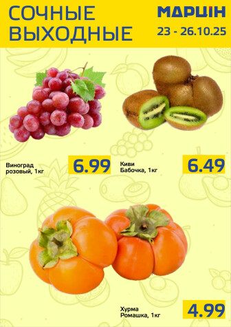 Текущие и будущие каталоги акций "Сочные выходные! (23 - 26 Октября 2025)" супермаркетов MART INN Новополоцка