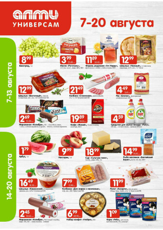 Текущие и будущие каталоги акций "Акционная листовка (Алми только для универсамов) (7 - 20 Августа 2025)" супермаркетов АЛМИ Орши